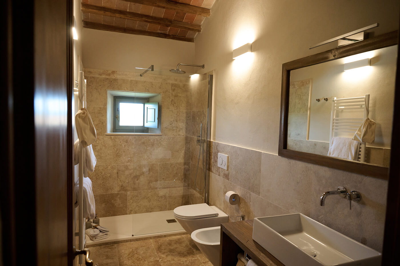 Luogo dall’atmosfera surreale, dove lo stile rustico dell’antica struttura in pietra arenaria e la modernità delle tecnologie attuali, renderanno il vostro soggiorno un’esperienza unica e in autentico stile toscano.