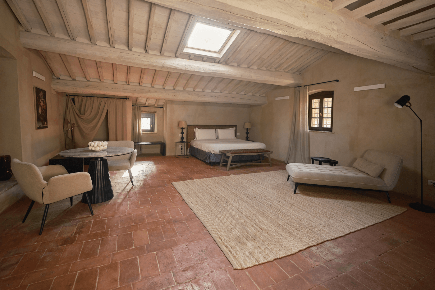 Entrate in un mondo di eleganza e serenità nelle Suite del Palazzo, dove storia e lusso discreto si fondono armoniosamente. Situate nel cuore di Palazzo Massaini, queste sei camere raffinate si affacciano sul suggestivo cortile interno, regalando viste mozzafiato sulle dolci colline della Val d’Orcia—un paesaggio che sembra dipinto dal tempo.